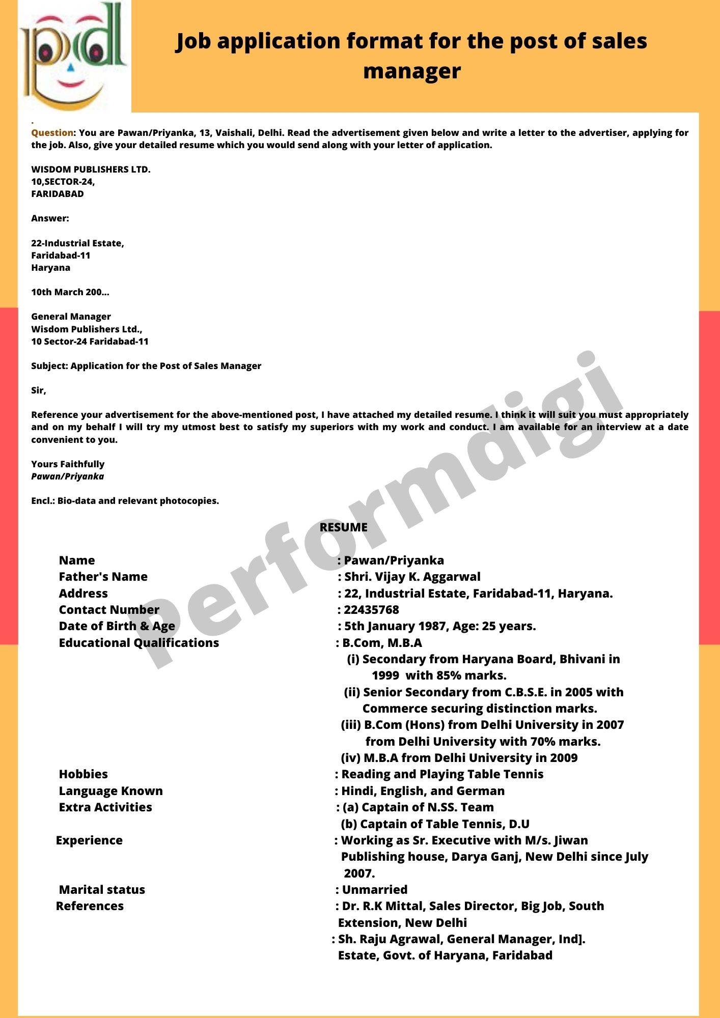 job application format for the post of sales manager Download Pdf (707 downloads )