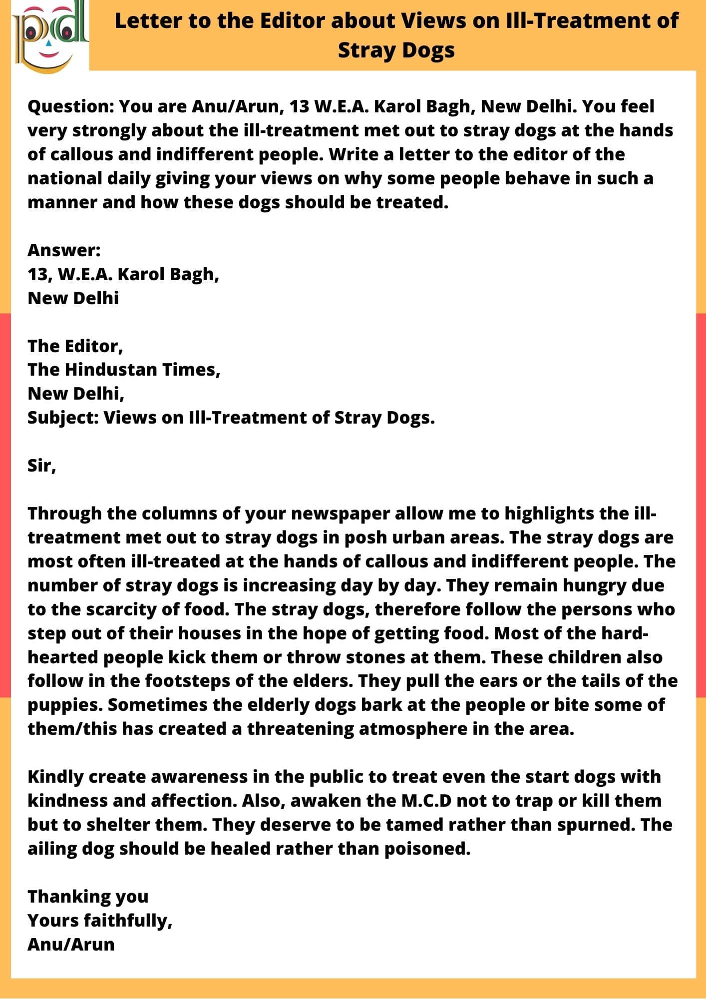 Hello Friends, we are going to describe How to Write a Letter to the Editor about Views on Ill-Treatment of Stray Dogs.