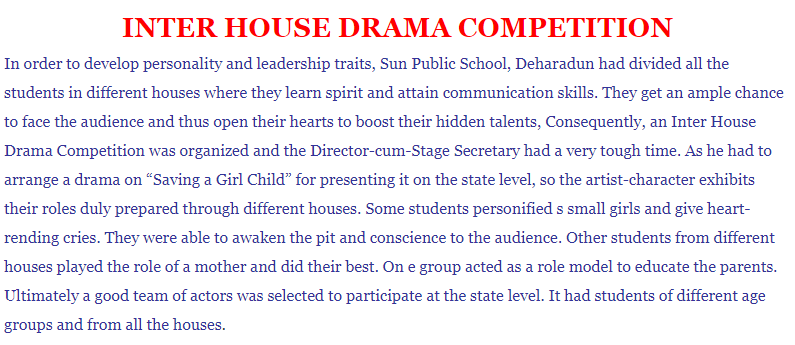 Process Writing on Inter-House Drama Competition 150-200 Words